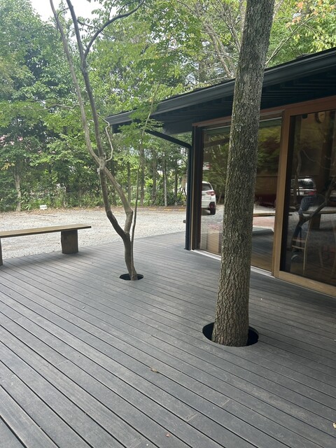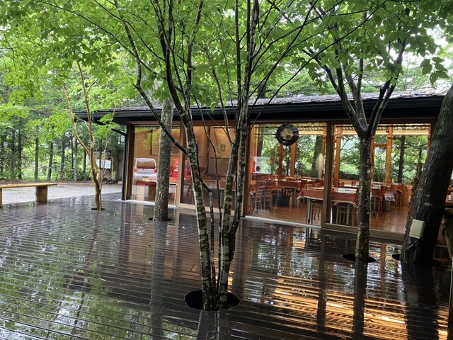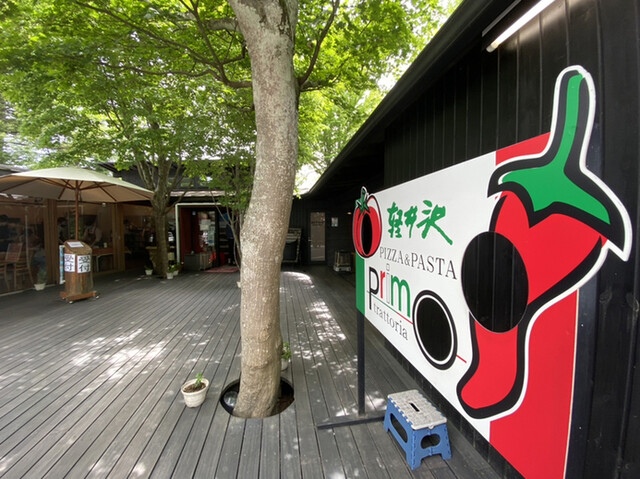 軽井沢・旧道方面に向かうと森の中に見えるスタイリッシュな外観が特徴。軽井沢の自然に囲まれた本格イタリアン。 開放的な店内で心地よくお過ごし下さい。