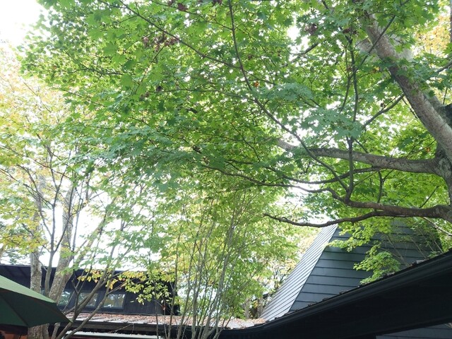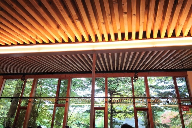 店内からは緑が見え、テーブルもかなり大きくて広々使えます。天井も高く開放的な感じがいいですね!