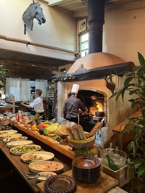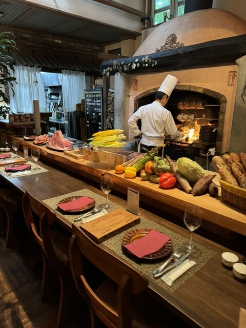 特製の暖炉で楢材の薪を使い、若鶏や仔羊、長野県の千代幻豚や信州プレミアム牛など、新鮮で力強い食材を炙り焼きにします。暖炉で焼きあがるお肉を待つ至福の時間は日本海直送の魚介類が奏でる前菜でお楽しみを!