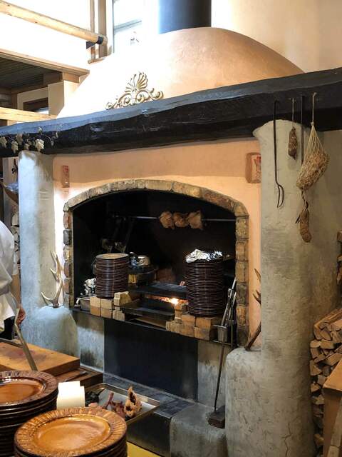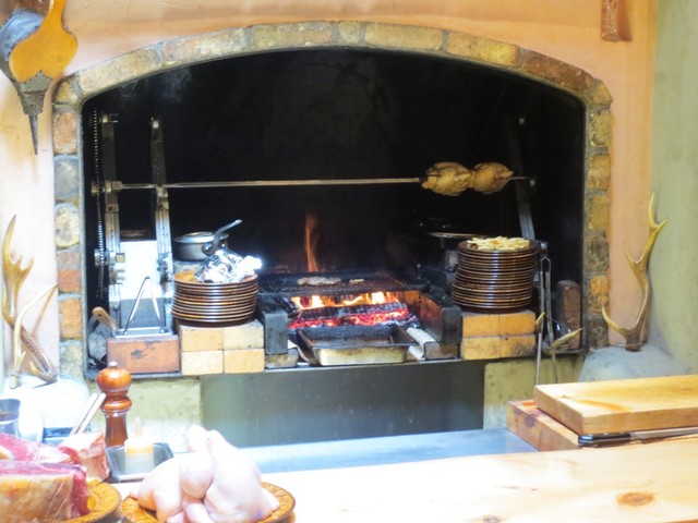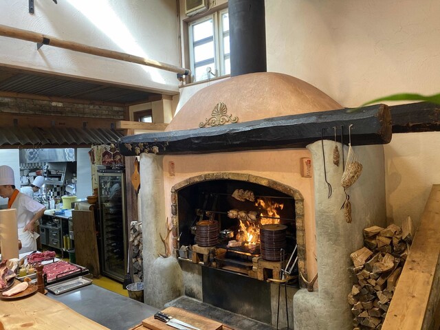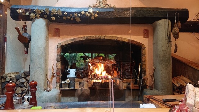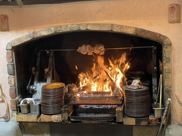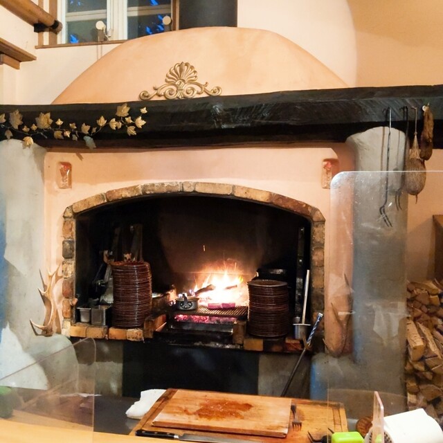 特製の暖炉で信州の牛や豚、若鶏を豪快に炙り焼きに!