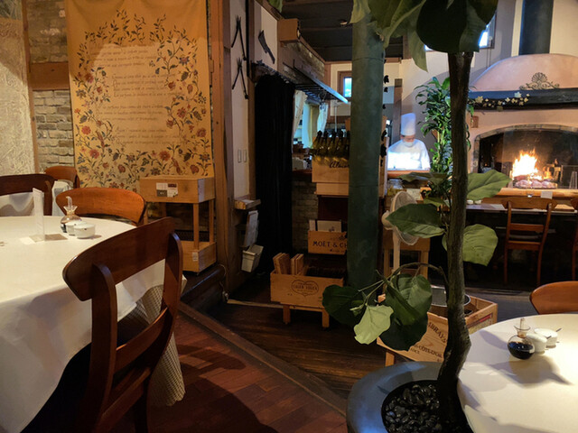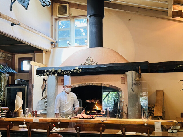 特製の暖炉で楢材の薪を使い、若鶏や仔羊、長野県の千代幻豚や信州プレミアム牛など、新鮮で力強い食材を炙り焼きにします。暖炉で焼きあがるお肉を待つ至福の時間は日本海直送の魚介類が奏でる前菜でお楽しみを!