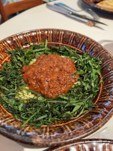 パスタはアルデンテに独自のミートソースが添えられているが、これにも大葉の隠れた和のテイストがより肉の旨味を引き立てる名脇役を演じている。