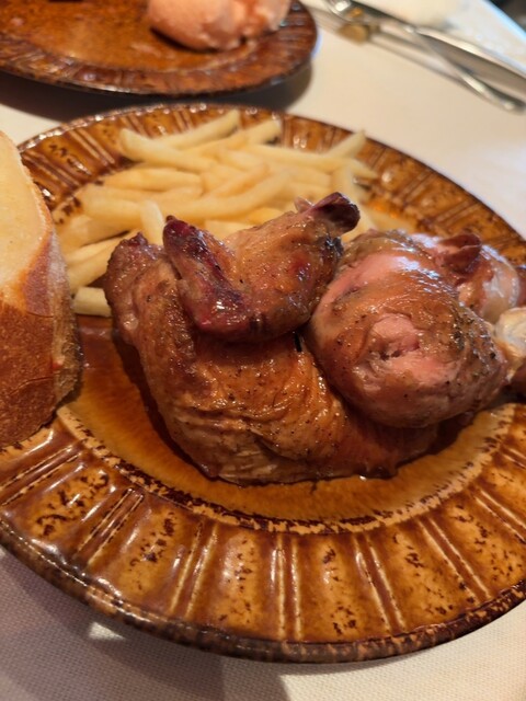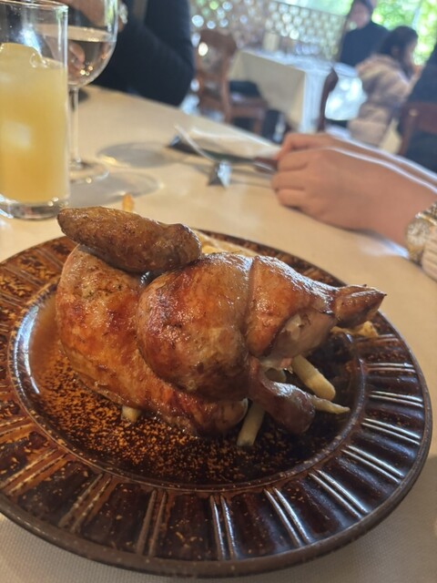 若鶏は半身ながらグリルで焼いた香ばしさが直接口に広がり、岩塩のほのかな塩味に鶏の脂が引き立つ。柔らかさも一段と感じられる。