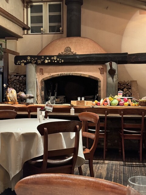 暖炉が真ん中にあるお店で、軽井沢のカルチャーを感じるお店です。オーベルジュ・ド・プリマヴェーラの姉妹店でこちらの方が予約が取りやすいです。