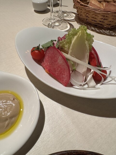 前菜も前回と違うもので、サーモンと季節野菜のバーニャカウダーをいただきました。