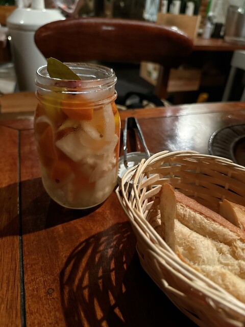 ピクルスはテリーヌの付け合わせとのことですが、ピクルスはおかわり自由という嬉しいサービス付き。これがまた絶品で、野菜そのものの新鮮さと風味を存分に味わえます。