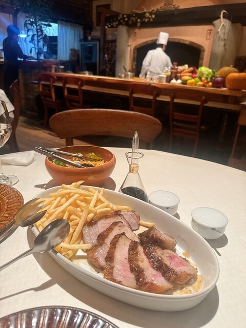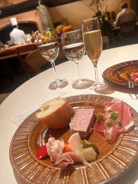 ピレネー軽井沢での食事は、軽井沢らしい木々に囲まれた雰囲気の良い暖炉のある一軒家で楽しむことができました。テラス席は犬連れでも利用可能で、避暑地ならではの贅沢な時間を過ごすのにぴったりです。おしゃれな料理が並び、特にお肉料理はボリュームがあり、非常に美味しかったです。