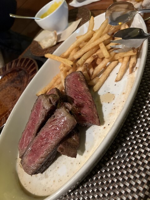 メインに骨付き熟成牛、千代幻豚、若鶏をそれぞれ注文してもらいました。お店の雰囲気、どの料理もその美味しさ、感動ものでした。平日だったこともあり、周りのお客さんも常連の方が...