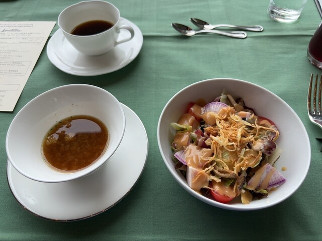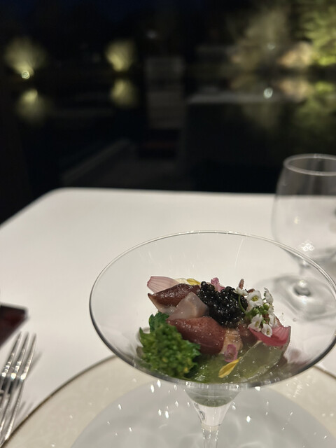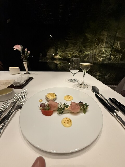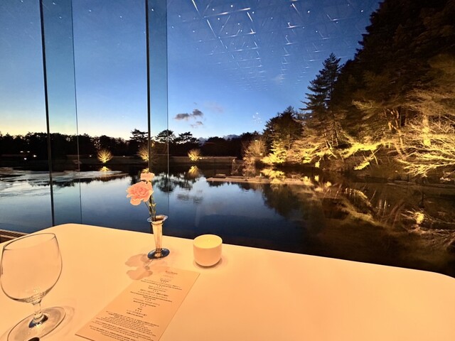 アウトレットからは少し離れた棟の大人向けフレンチでドアを開けると一面ガラス張りで景色が感動的♡秋は紅葉にもなるみたいでめちゃくち...