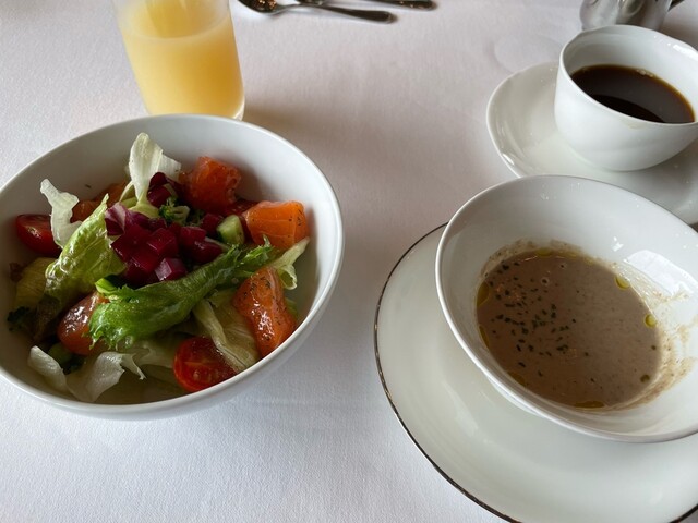 ザ・プリンスに宿泊し、朝ごはんで伺いました。窓際の席を準備してくれたのですが、これが感動。テーブルごとにすこし仕切りがあり、隣に人がいるのが気にならないプチプライベート空間。