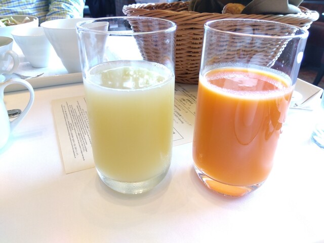 ジュース3種、メイン(卵料理)2種、コーヒー・紅茶の選択。