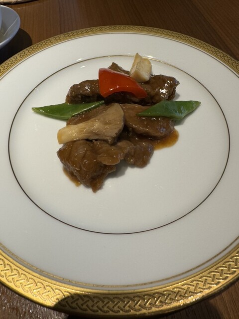 コースのバランス良き、、前菜、エビチリ、牛肉のオイスターソース炒め、春巻き、チャーハン、杏仁豆腐、、ワインでいただきました。