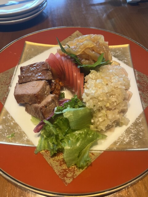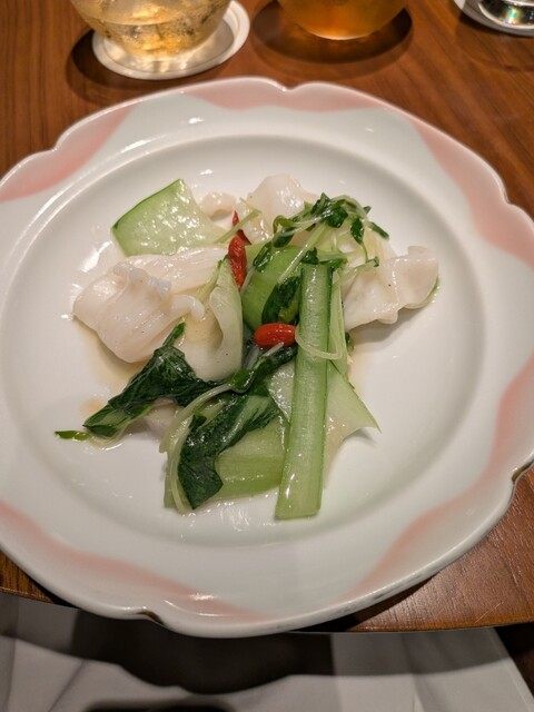 プリンスホテルウエストにある中華。ビュッフェは混雑しててもこちらは落ち着いた雰囲気。好き嫌いがあるのでアラカルトで注文。前菜はくらげの冷製。アオリイカと野菜の塩味炒め、牛フィレ肉と野菜炒めは何もしっか...