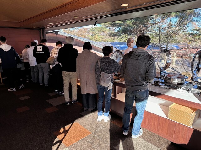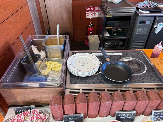ビュッフェは品数も豊富で、和洋折衷色々と取ってしまいましたが、私としては外せないのが目の前で作ってくれるフワフワの卵オムレツですね。これは待ってでも食べたいと思い、確保しました。