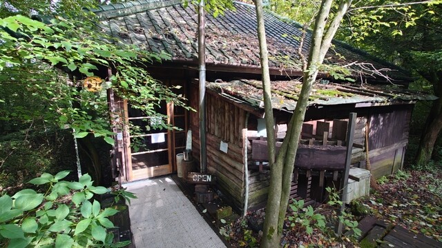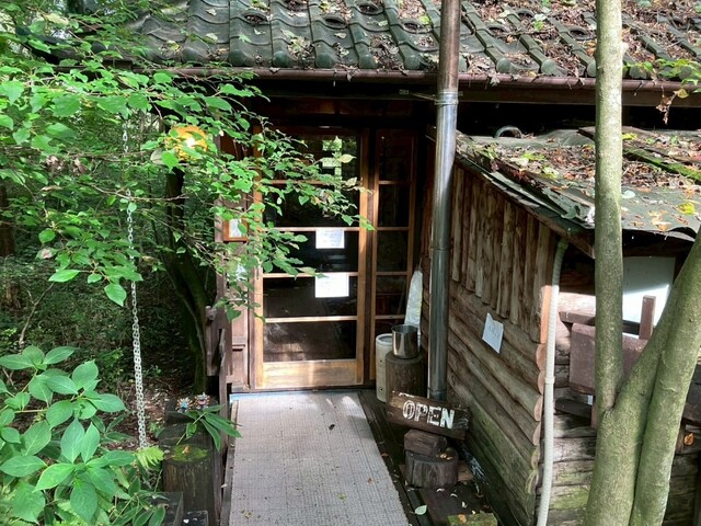 旧軽井沢の後はアウトレットでお買い物をして、こちらへ。南軽井沢の奥にあり、目立たないところにあるので、車で走っていると見逃してしまいそうな隠れ家的なカフェです。ふくろうの彫刻が目印で、山小屋風の建物です。