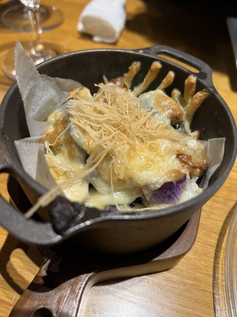 秋茄子のグリル。チーズにカダイフが乗って洋風。