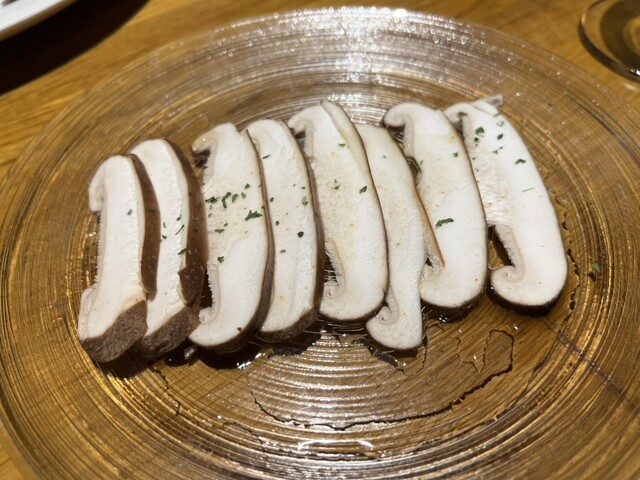 アラカルトの 北軽井沢産しいたけのカルパッチョ。生で椎茸は十分旨みがあります。