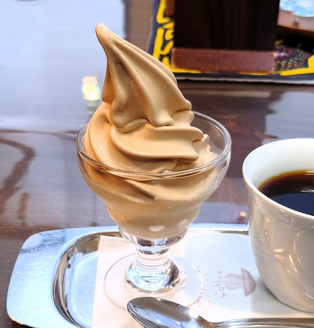 気になったので、コーヒーソフトクリームを食べてみました。コーヒー牛乳感。