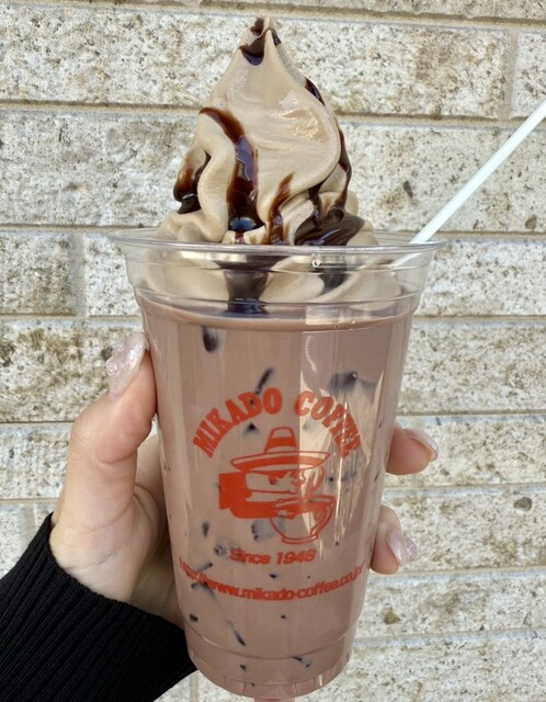 軽井沢の駅寄りのプリンスショッピングプラザ立ち寄り時に駅側にあるミカドコーヒーのカフェモカソフトが気になり、購入。