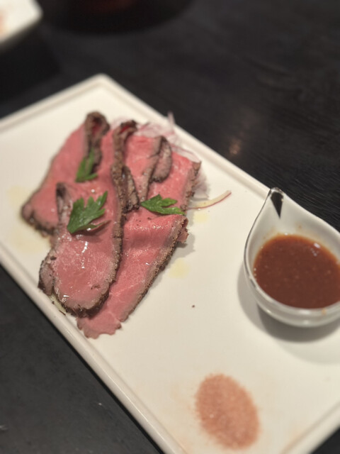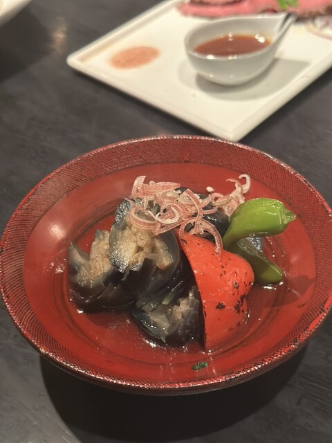 本日のおすすめの茄子の煮浸しもお出汁の優しいおいしさだったし、ローストビーフも柔らかくておいしいし、鶏の田舎煮も間違いない!