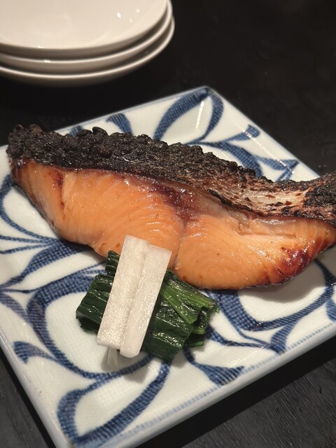 大根おろしとわさびをのせて醤油で頂いたんですが、脂っこくなくて、でも脂の甘味は堪能できて・・・焼き加減もサイコーで、むちゃうまでした!!