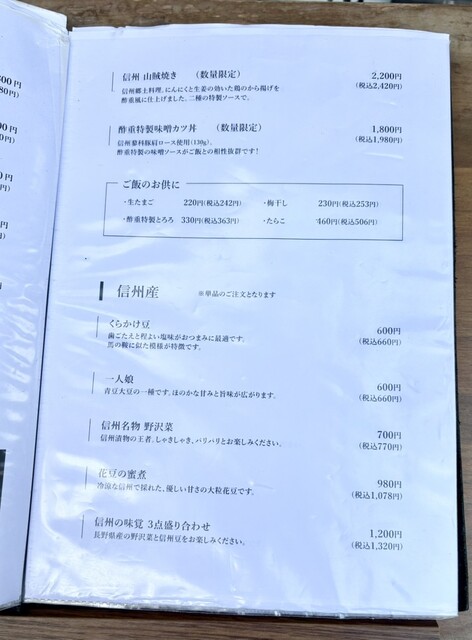 特産の味噌・醤油・豆や旬野菜を使った一品料理を肴にワイン・ビールや地酒が楽しめます。お酒の締めには、銅鍋で炊いたふっくらこだわりご飯と信州味噌の味噌汁が人気。ジャズの流れる店内でごゆっくりお寛ぎください。 |