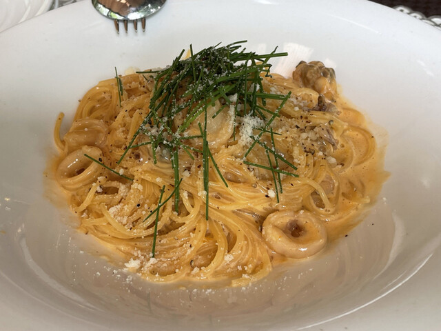 ランチタイムは、前菜、デザート、食後のお飲物がセットになった3種類のランチコースが主体。 気軽に召し上がっていただけるようランチタイムのみパスタもご用意しております。