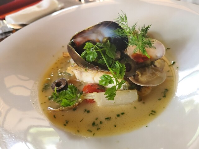 高知産しょうが真鯛とムール貝、あさりのスープ仕立て