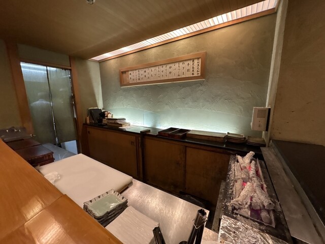 カウンター10席のみで雰囲気も良く塩やレモン等の薬味も都度変えていただきます。