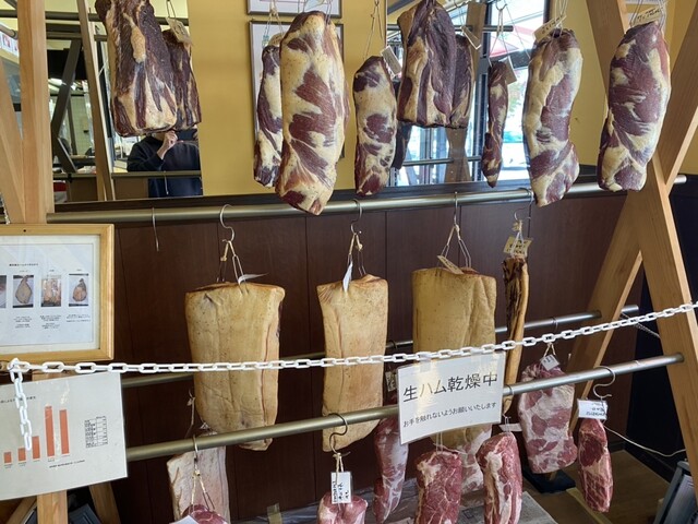 販売所の軒先で焼いているソーセージをカウンターでいただけます。 |