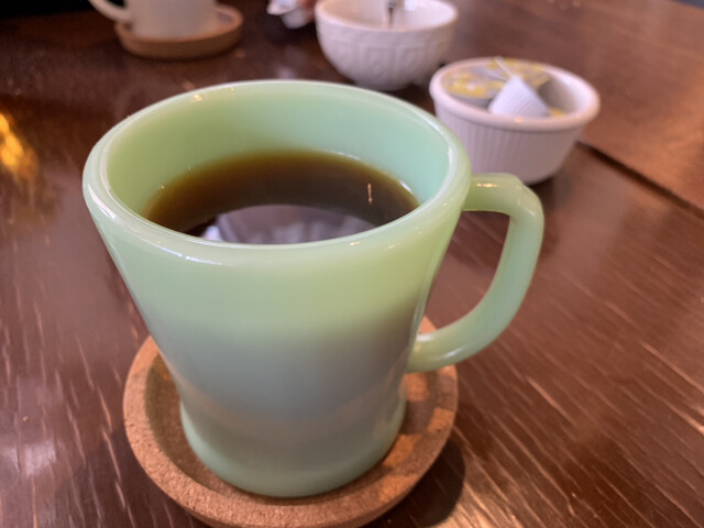 お皿もクラシック。コーヒーカップもファイヤーキングのミルクガラス風のコーヒーカップで「コーヒー(税込450円)」をいただく。