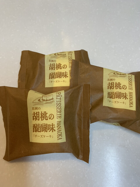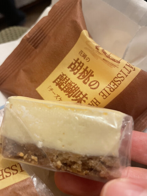 下にクルミが敷いてあって美味しいチーズケーキ。
