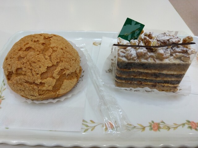嫁と子供がツルヤで食材を調達している間、お父さんは店内にある「花岡」で買った物をイートインスペースで食べながらまったりと休憩です。