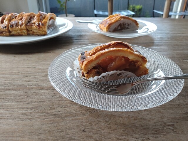 安曇野の帰り道、本店で予約したアップルパイを頂きに軽井沢店へ伺いました。こちらのアップルパイは季節限定で毎年頂きたくなる焼菓子です。パイの中は信州産紅玉…シナモン控え目で丁寧に炊き合わせていてシンプルお味。また、パイ生地には濃くのあるバターとアーモンドプールがたっぷり使われていました。