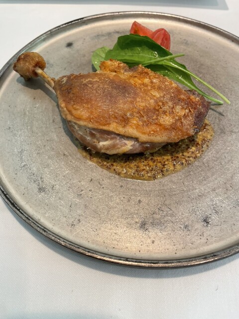パスタは甘海老が濃厚な味わいながらレモンですっきりとした風味があり、締めの鴨コンフィは野生味あふれる骨付き肉に、フレッシュなトマトと(おそらくサツマイモの)マッシュポテトが添えられていて、使用されている素材の良さを存分に味わうことができました。