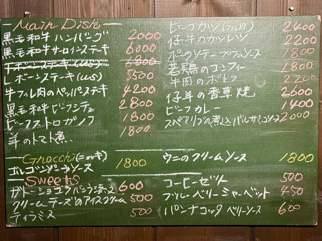 旧軽銀座から少し離れた通りに面した洋食屋さん。あの日本人が好きな「洋食」だが、決して町洋食ではなくワインに合うメニューの数々で、食いしん坊には危険なラインアップだ。