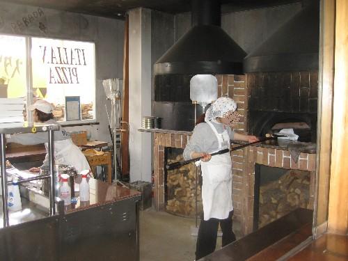石釜が二つしかも! まき釜である。ピザができるのも早いし