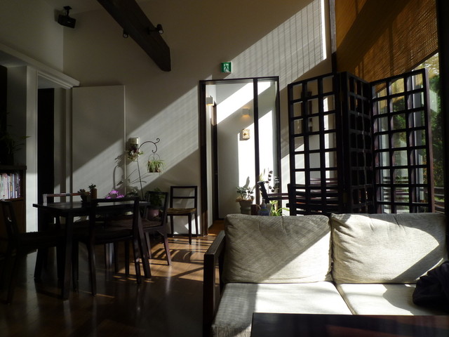 天井が高く、窓の大きい一軒家カフェ。洗練されたインテリアに、クリスチャンのオーナーのおばさまが気配り上手で、心地よい空間を作っています。席もゆったり、4テーブル15席でソファ席もあります。