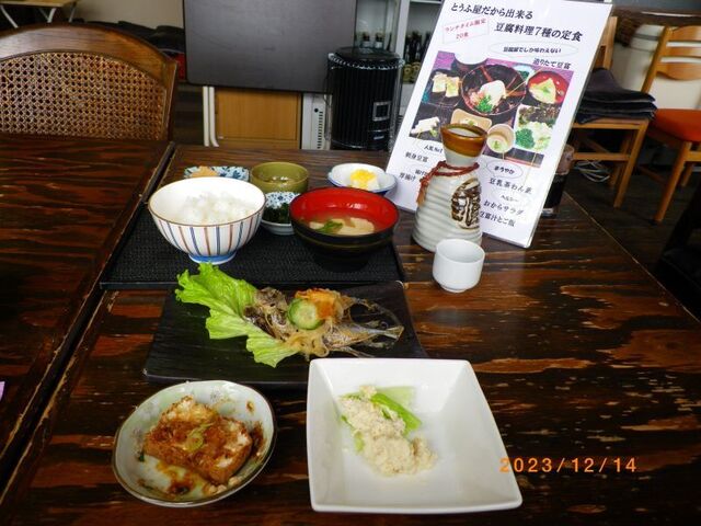 様々に工夫した豆腐料理のフルコースを楽しみました。追加で頼んだ小アジの南蛮も美味しかった!