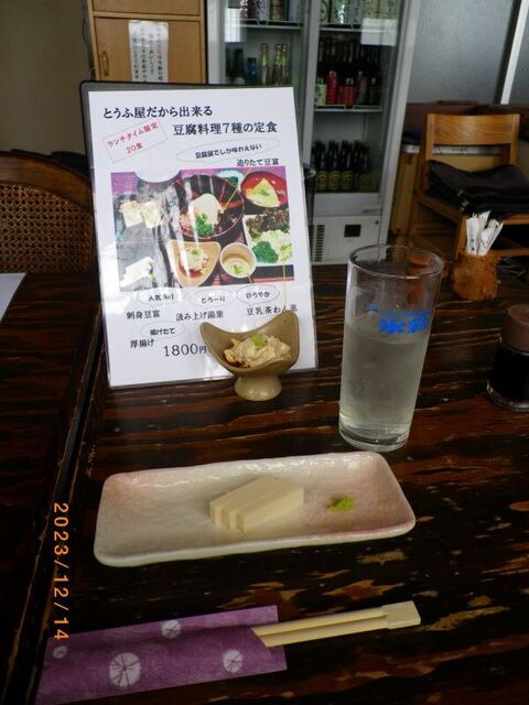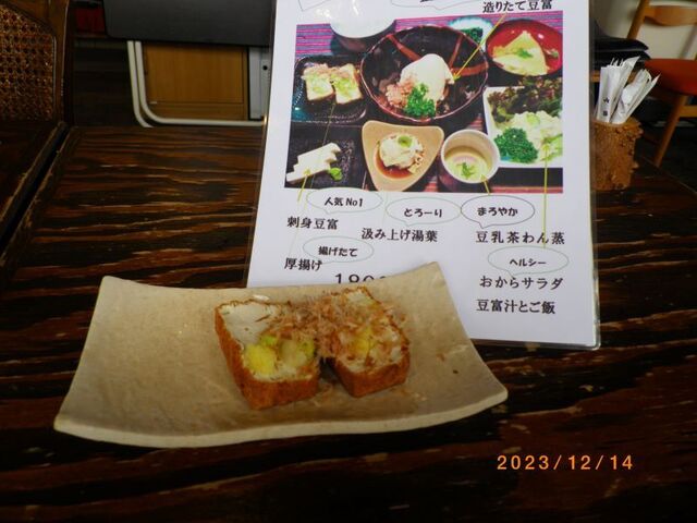 以前は豆腐を使った料理が多く楽しめたが、今回久々訪ねてみると料理種類がかなり減っていて、酒の友に揚物しか注文できなかったのが残念。お酒は多種あり楽しめた。
