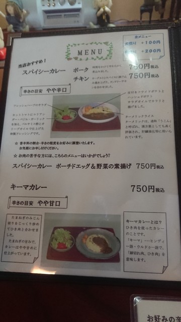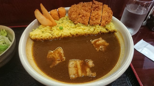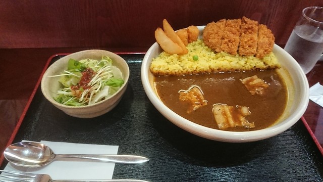 8月5日は一週間振りの休日でした。朝一から”ミッションインポッシブル”を観て昼食に伺ったのがここ”カレーの匠”である。アルバイトの方から聞いた週2日しか営業しないカレー屋さんがあるとの事で食べログで検索し情報を得た上で訪店しました。何と金曜日と日曜日のみ営業するという今時珍しいお店である。しかも営業時間は11時~15時までという短さだ、興味をそそられ迷わず訪店しました。外観はまんま一般の住宅です、店舗の裏側には5~6台程度の駐車場が用意され入口を入ると右手に下駄箱があり履物を脱いで入店する。正面にカウンター席が5つほど、右手には4人掛けのテーブが4卓、右手には畳の部屋があり座卓が4卓ほどある割とこじんまりしたお店である。家族経営の様で奥さんが出迎えてくれカウンター席に陣取ると右手にカーテンがありその奥がキッチンの様でカレーの香りが食欲をそそる。メニューを拝見、チョイ辛が好みなのでスパイシーカレーのポーク大盛にカツのトッピングをオーダーししばし待つ事15分程で供された。お盆に載せられミニサラダも付いてかなりのボリュームである。カツは200円という事もありさほどの大きさではないが二種のポテトフライが添えられている。早速頂くとカレーはスープタイプでスパイスが効いて旨い‼️これはかなり手間を掛けて煮込んだ感じだ、ターメリックライスと相まってgoodです。カツも揚げたてアツアツでカレーと相性抜群である。汗をかきかき一気に頂く。食事中に店主が挨拶に来てくれたが人当たりのイイ気さくな感じの方でした。「カレーは飲み物」というウガンダトラの言葉が浮かんだ‼️金日のみの営業という事で中々行く機会が少ないが是非再訪したいと思います。ご馳走さま。