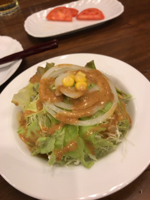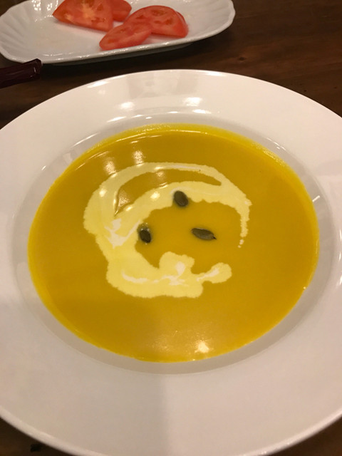 後、ちょっとリッチにサラダとパンプキンスープを付けてちょっとしたコースちっくに。