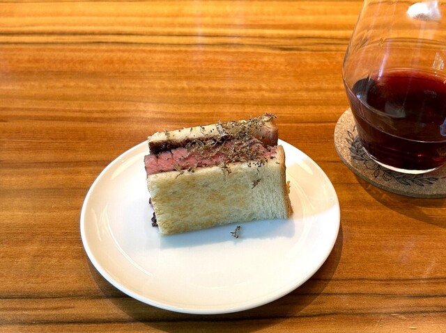 そうしていたら牛肉のサンドイッチが届き、食べてみるとトリュフの香りものって、美味しいです。