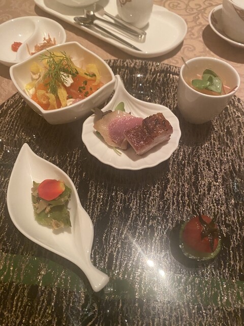 北京ダックと廣東ダック食べ比べや、早松茸焼き、和牛や鮑などありまし...