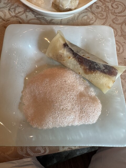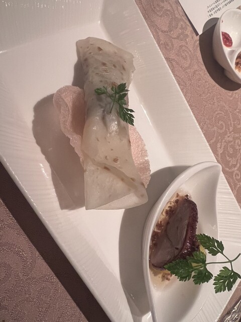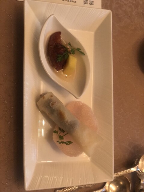 松茸と春巻きと杏仁豆腐は文句なしに美味しく、特に杏仁豆腐は今まで食べた中でも上位に入る美味しさです。春巻きは皮がパリッと香ばしくて中の旨みがしっかり詰まっていました。松茸も香り高く、贅沢な味わい。