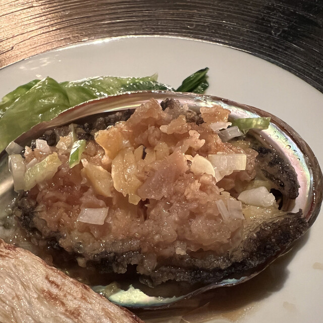 ◆やわらか鮑の強火蒸し ガーリックバターの香り