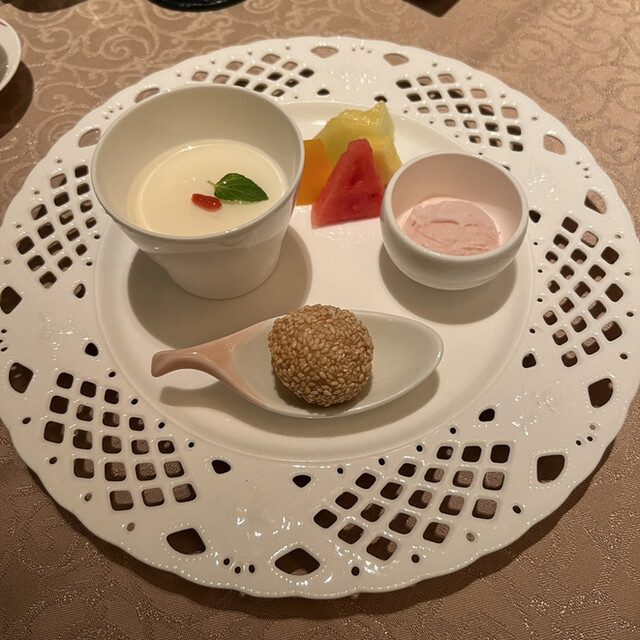杏仁豆腐や胡麻団子など中華デザートで最後は〆。