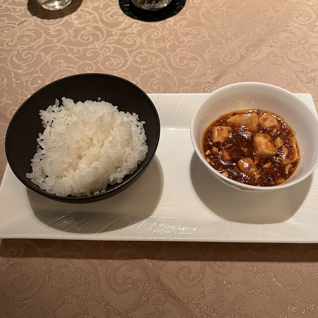 ◆お食事 麻婆豆腐と浅科五郎兵衛米のご飯 or 金アグー豚のアッサリ冷麺