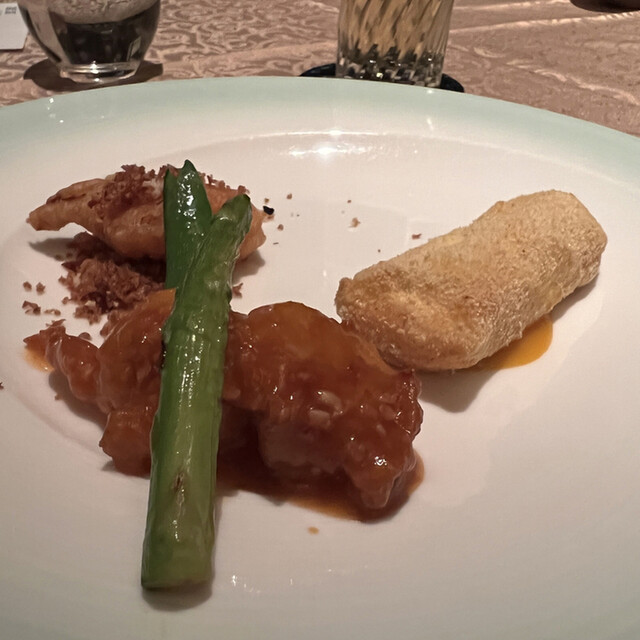 オマール海老の濃厚な身の美味しさに甘辛なタレが加わり、これもたまらない美味しさでした。