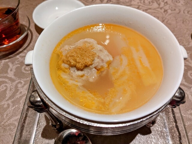 アツアツの上海蟹の蟹味噌 肉団子のスープが